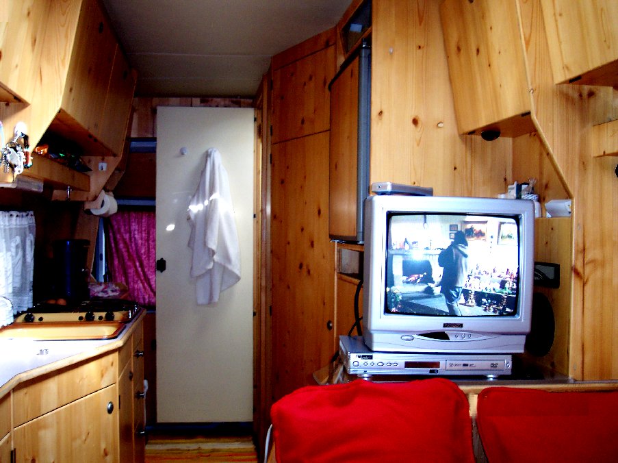 und eine große Dachbox. Die Reifen sind wie neu. Ein Farb-TV und 2 Radios